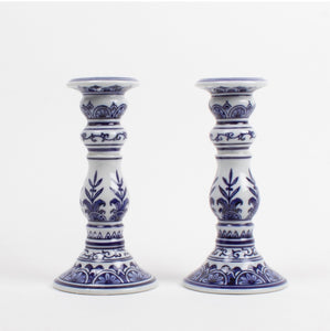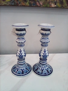 8 Oak Lane Candlesticks set of 2 Blue & White (ENO51Lg)