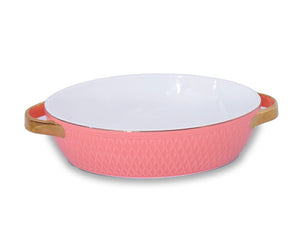 Beatriz Ball Ceramic Oval Baker with Gold Handles- Salmon (2177)